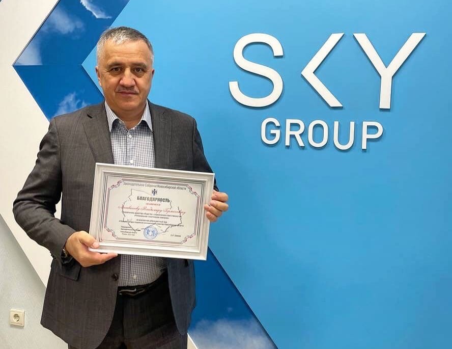 Сегодня депутат Законодательного Собрания Новосибирской области Виталий Быков вручил генеральному директору компании “SKY GROUP” Владимиру Литвинову благодарность за многолетний добросовестный труд и большой вклад в социально-экономическое развитие Новосибирской области.